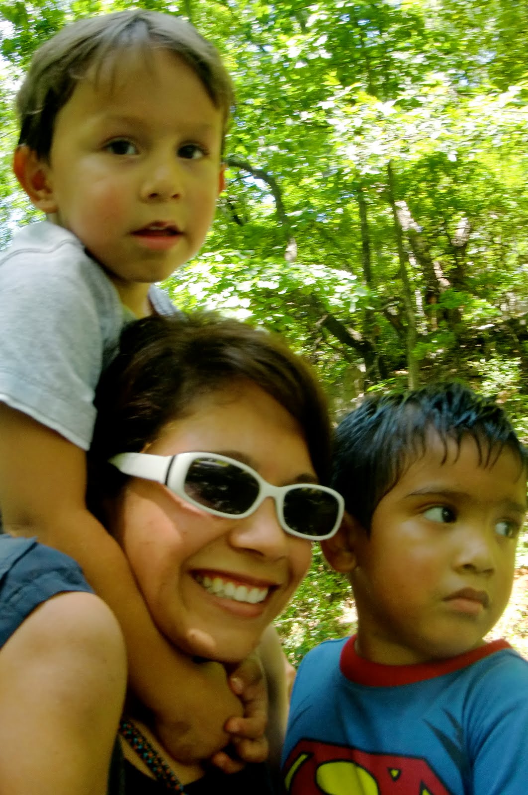 at a cool lake. It was so hot that the sweat was running down everyone's face and all the boys had wet shirts. I fell so bad for the poor boys. All four cousins.